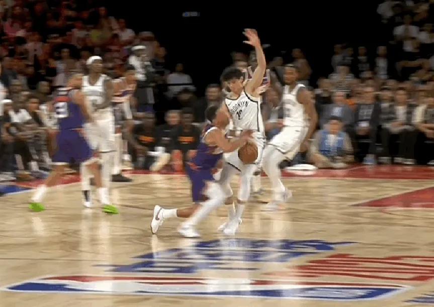 At halftime, the Nets led the Suns 71-59. Booker, the biggest star, missed all his field goals under tight defense but scored 6 points from 7 free throws, along with 4 assists and 3 steals. Dillon shot wildly, making 6 of 15 attempts for 16 points.