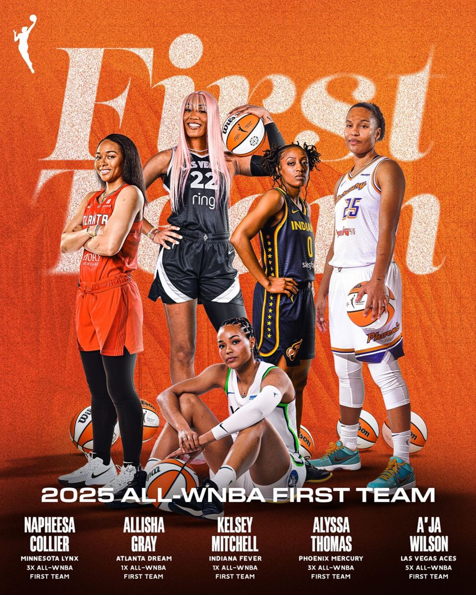 Collier finished as the runner-up for MVP for the second consecutive year and earned her fourth All-WNBA Team selection. The 29-year-old remains a key force on both ends of the floor, averaging 22.9 points, 7.3 rebounds, 1.6 steals, and 1.5 blocks per game. Her three-point shooting percentage reached 40.3%, with a career-high 124 attempts.