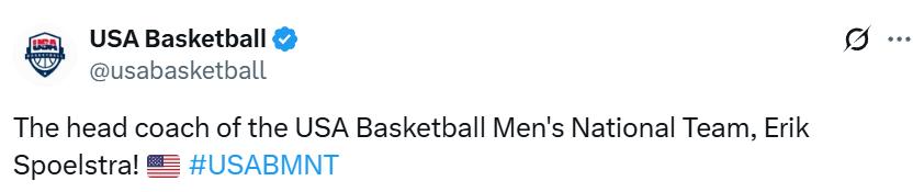 Spoelstra’s appointment still requires approval from the United States Olympic & Paralympic Committee. Further staff appointments related to the future activities of the USA Men’s National Team will be announced in due course.