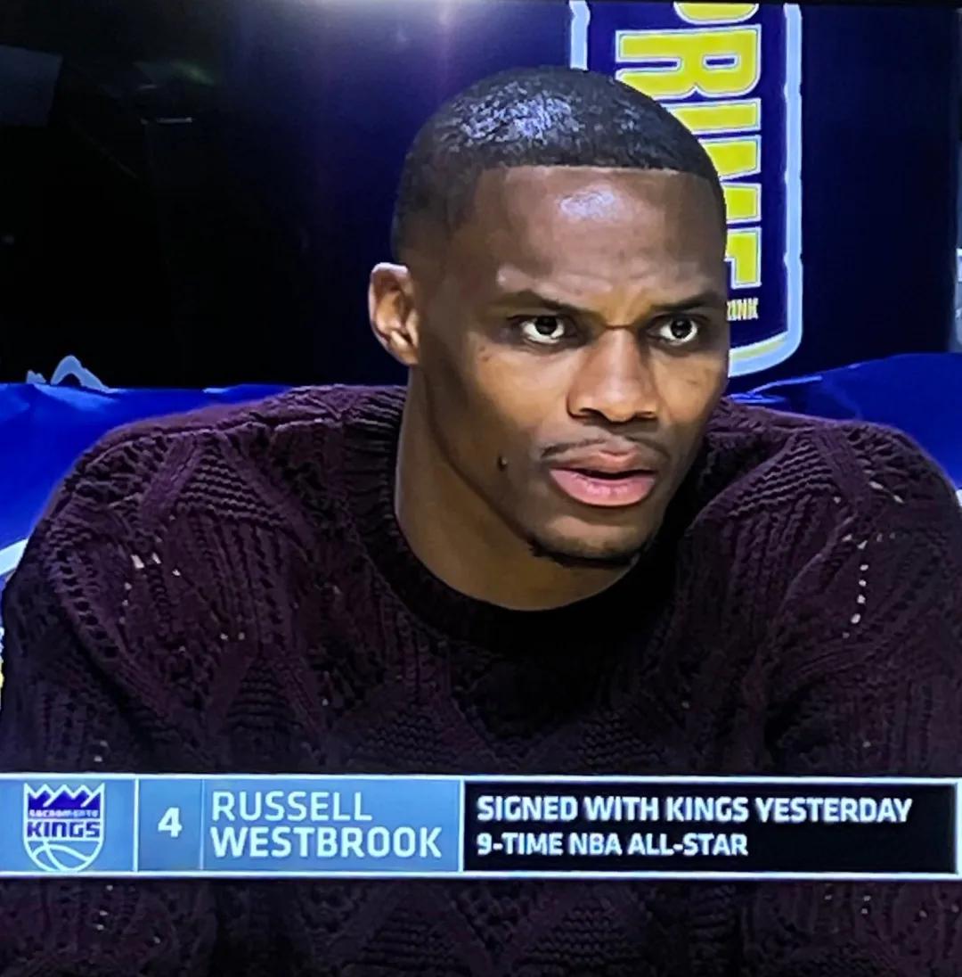 Westbrook was present to watch the Kings’ 117-116 close win over his old team, the Lakers, with the broadcast paying tribute by displaying his 9 All-Star selections on screen.