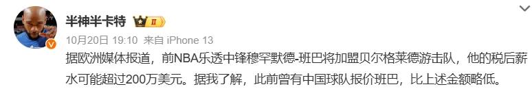 According to reports from domestic media,some CBA teams were also keen on acquiring Bamba, but their salary proposals were somewhat less than that offered by Partizan Belgrade.