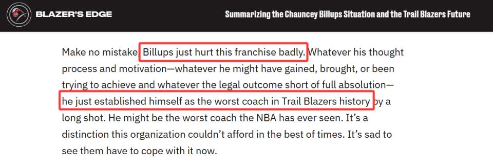 On October 24th Beijing time, according to reporter Shams, the Billups gambling case is unlikely to have any concrete outcome for 6 to 12 months. So, how will this affect the Trail Blazers' 2025-26 season? Portland media outlet Blazer's Edge provided an in-depth analysis, stating that Billups has caused significant damage to the team and is undoubtedly the worst head coach in franchise history. Here is their detailed breakdown—