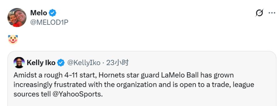 此前雅虎體育援引匿名消息來源報導,這位2022年全明星控衛對黃蜂的連敗感到越來越不滿,並對交易持開放態度。鮑爾明顯不認同該報導,他在社交媒體轉發該新聞時配上小丑表情,暗示內容不實。