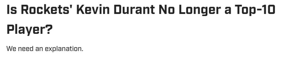 These stats are nothing to scoff at. In fact, Durant remains a strong candidate for the NBA All-Defensive Team and is almost guaranteed an All-Star spot. Judging by these performances, he should still be considered one of the league’s top active players. Exactly where he ranks, however, is open to debate.