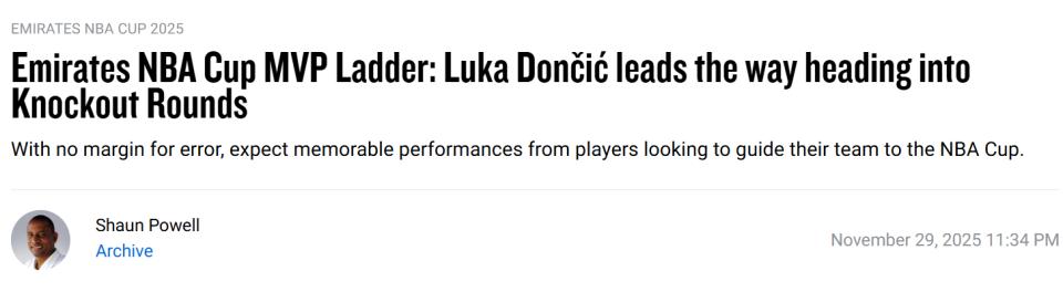 On November 30th Beijing time, with the NBA Cup quarterfinals decided, the NBA official site also unveiled the Cup MVP leaderboard. Two Lakers players ranked in the top five, but LeBron James was absent. The full rankings are as follows—