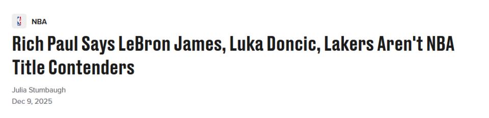 在節目中,保羅表示,他個人並不「認為湖人現在的陣容足以成為爭冠球隊」。他說:「我覺得他們的配置還達不到西部決賽的門檻,從爭冠角度來看,他們的硬實力還遠遠不夠。」