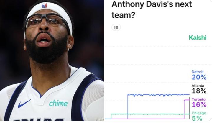 北京時間12月11日,根據名記Sidery報導,獨行俠非常願意在明年2月交易截止日前出售濃眉。Kalshi Sports給出的賠率預測,濃眉被獨行俠交易到各隊的概率如下——