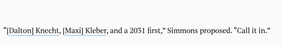 那麼湖人要提出怎樣的報價才能打動鵜鶘?名嘴比爾-西蒙斯在播客節目中表示:用克內克特、克勒貝爾,再加上一個2031年的首輪選秀權,”西蒙斯建議道,“就這麼報價。”