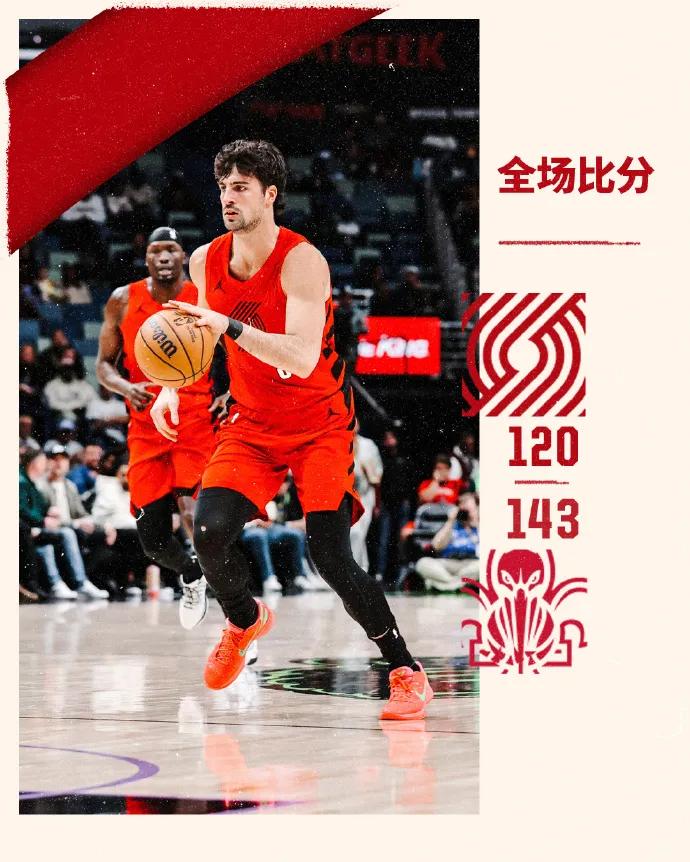 Recently concluded games: Trail Blazers lost 120-143 to the bottom-ranked Pelicans in the West, and the Salt Lake City Stars, a Jazz affiliate, were defeated 146-174 by the Rip City Remix.