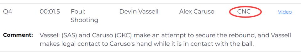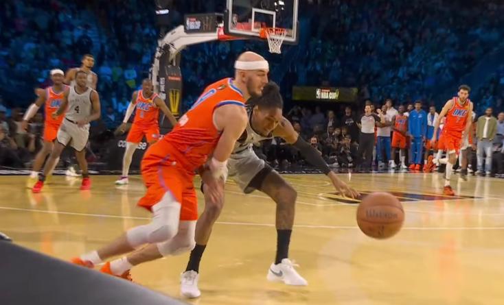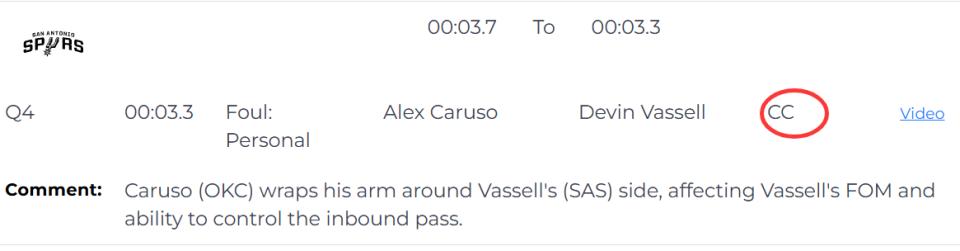 The first incident happened with 3.3 seconds left in the game, where the referees ruled that Caruso fouled Vassell. Caruso felt this call was unfair. The report explained that Caruso hooked Vassell’s side with his arm, disrupting Vassell’s balance and his ability to control the ball for the sideline inbound play. This was deemed a defensive foul.