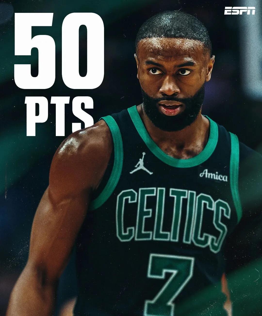 非常明顯,凱爾特人的火力強大讓快船根本難以抵擋,全隊三分球51投24中,命中率高達約47%,其中傑倫·布朗26投18中(三分10中6),高效砍下50分外加3籃板5助攻,全方位壓制對方的倫納德。