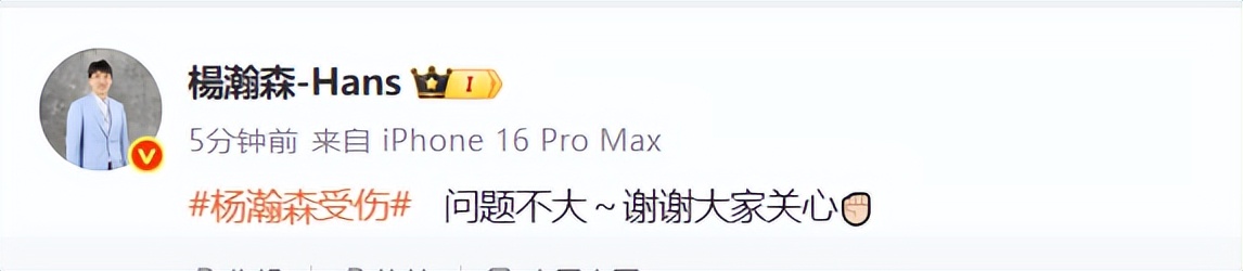 北京時間1月14日,開拓者以97-119輸給勇士。楊瀚森賽後在社交媒體更新狀態報平安,他分享了一張自己的照片,並留言:「沒事,謝謝大家的關心。」