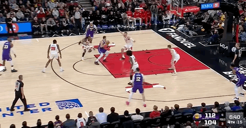 The Bulls scored 8 consecutive points, forcing the Lakers to call a timeout. That familiar feeling returned. Doncic’s three-pointer is tough, right?
