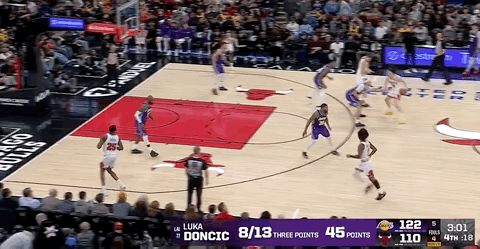 But the Bulls also made a three, Doncic made two free throws out of three attempts, the Bulls hit another three, and Doncic answered again