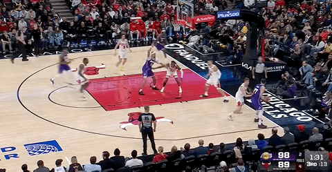 LeBron took a break, both teams exchanged free throws. Hachimura came in and tied the game with a mid-range jumper