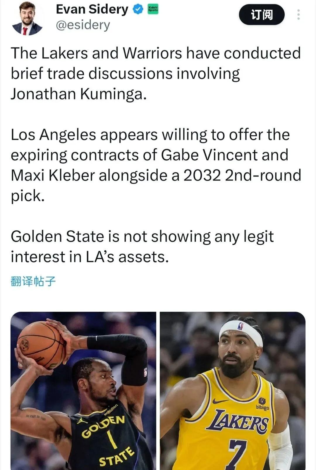 However, according to insider Sidery,the Lakers are only willing to offer Vincent and Kleber, both in contract years, along with a 2032 second-round pick, and the Warriors obviously dismiss such an offer, preferring to have Kuminga completely flop under their control.