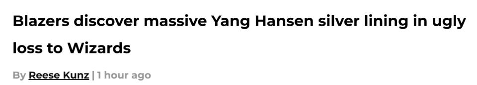 On January 28th Beijing time, Portland journalist Reese Kunz wrote that although the Trail Blazers narrowly lost to the Wizards, Yang Hansen was a major surprise in the defeat. Here is Kunz’s report—