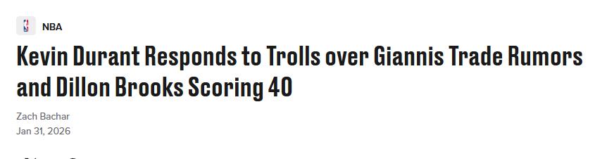 On February 1st Beijing time, keyboard warrior KD made a reappearance! Rockets star Durant was quite surprised by the rumors linking his name to a trade involving Giannis and the Milwaukee Bucks. In addition, he also replied to Dillon’s recent 40-point explosion.