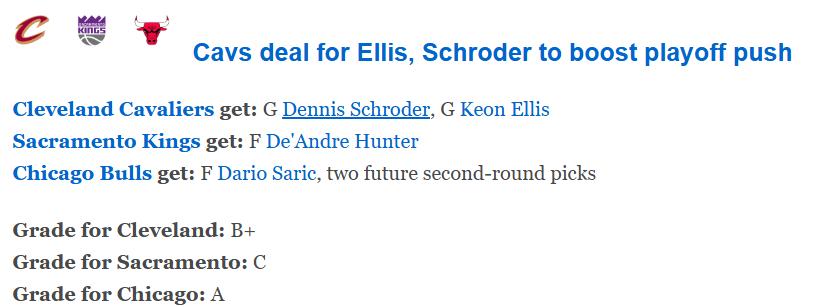 Subsequently, ESPN rated the trade: Bulls received an A, Cavaliers a B+, and the Kings the lowest rating of C. Below is the detailed analysis —