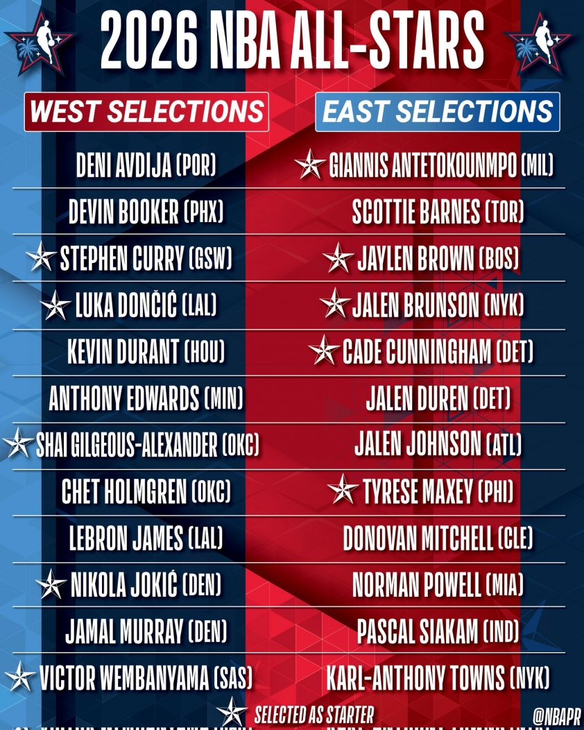 NBA has officially released the full roster of players for the 2026 All-Star game after confirming 14 additional reserves for the season's most awaited event. Two weeks earlier, 10 starters were announced, completing the lineup of 24 stars who will participate in the highly anticipated event from February 13 to 15 at Intuit Dome, home of the Los Angeles Clippers.