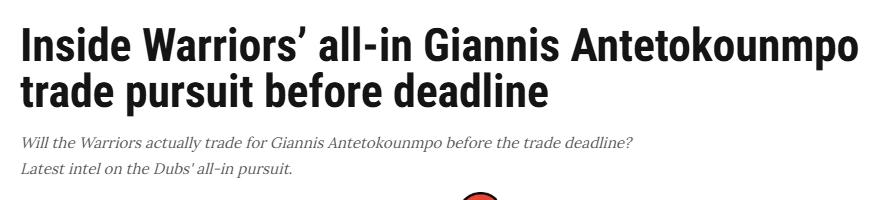 On February 3rd Beijing time, NBA reporter Charania reported that league insiders disclosed the Golden State Warriors are the most enthusiastic team vying for the Greek Freak.