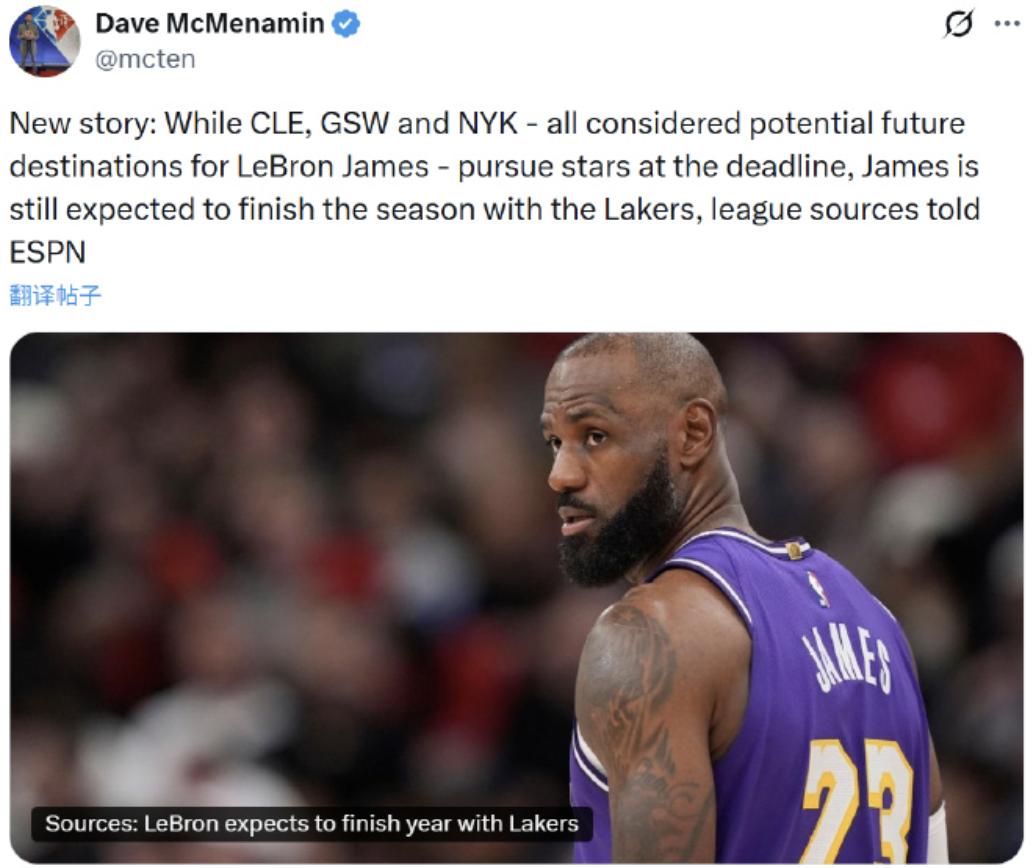 Regarding LeBron James, renowned reporter Dave McMenamin stated that the Cavaliers, Warriors, and Knicks are potential future destinations for him. However, as the trade deadline approaches, LeBron is expected to remain with the Lakers through the end of this season.