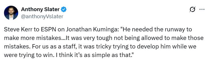 "I think it was a tough spot for everyone," Kerr explained, "He came in very unpolished, and we were still in the midst of a championship run. He needed enough room to make mistakes, to gain NBA experience, and truly understand the league. For him, not being allowed to err was very hard; for us coaches, trying to win a title while also developing him was tricky. That’s just how it was."