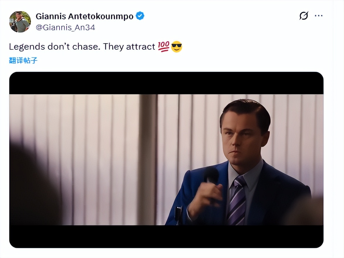On February 6th Beijing time, after the trade deadline passed, Giannis stayed with the Bucks and was not moved to another team. He personally posted on social media after the deadline: "Legends never chase, they attract naturally." Giannis also reposted a film scene where Leonardo says, "I damn sure won’t leave, this is my home court."
