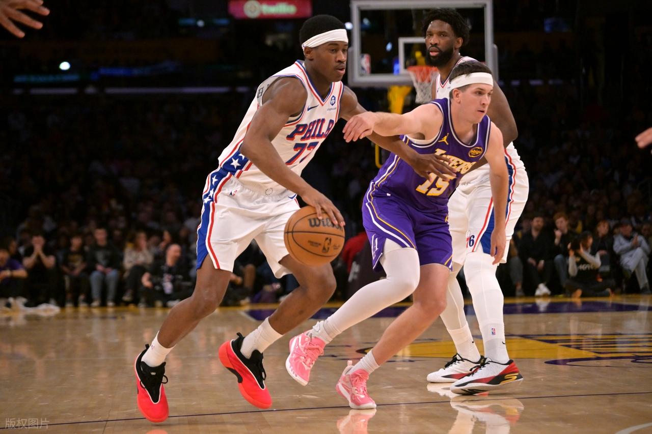 During the third quarter, LeBron James still struggled with his shooting but actively facilitated the offense through his playmaking, delivering several excellent passes. The Lakers spread their scoring around and narrowed the gap to 69-74. After the 76ers pushed the lead back to 10 points, Reaves and Rui Hachimura hit long-range shots, significantly closing the margin. At the end of the quarter, the 76ers held a slim 87-85 lead.