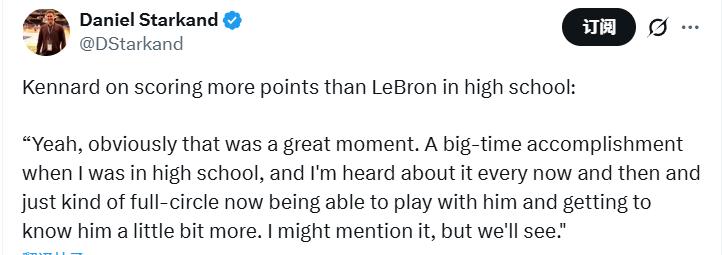 According to U.S. media reports, Kennard scored 2,977 points during his high school career, even surpassing LeBron James’s high school total of 2,657 points. Reflecting on outscoring LeBron in high school, Kennard said: “Of course, that’s a great memory and a major achievement from my high school days. People still bring it up sometimes. Now that I get to play alongside him and know him better, it all feels very fulfilling. Maybe I’ll mention it to him, but we’ll see.”
