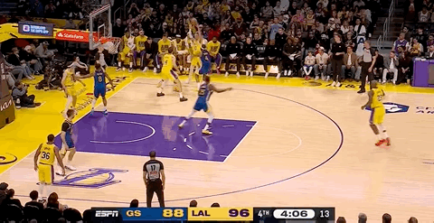 The Warriors scored a 2+1, Reeves was fouled and made both free throws, keeping the Lakers ahead by double digits. With little time left, the Warriors had no chance to come back. The Lakers stopped attacking, resulting in a 24-second violation, yet the Warriors still managed to shoot a three-pointer.