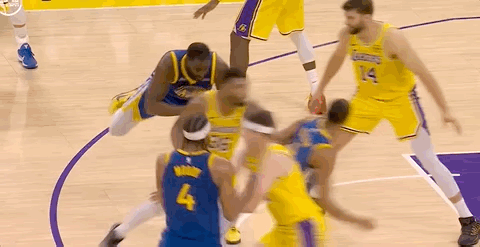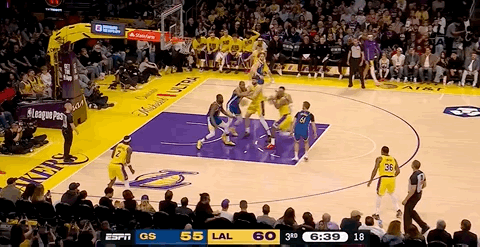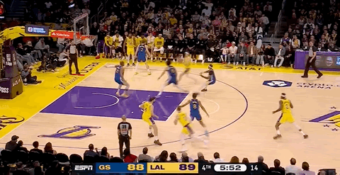 The Warriors missed several shots in a row. Reeves made two free throws. The Warriors hit a three-pointer, forcing a Lakers timeout. LeBron made one of two free throws. Green committed a harsh foul on Reeves, and Kleber stood up for his teammate.