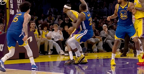 LaRavia's defensive lapse allowed the Warriors to score six consecutive points, prompting a Lakers timeout. Green fouled Vanderbilt aggressively—such a move occurred.