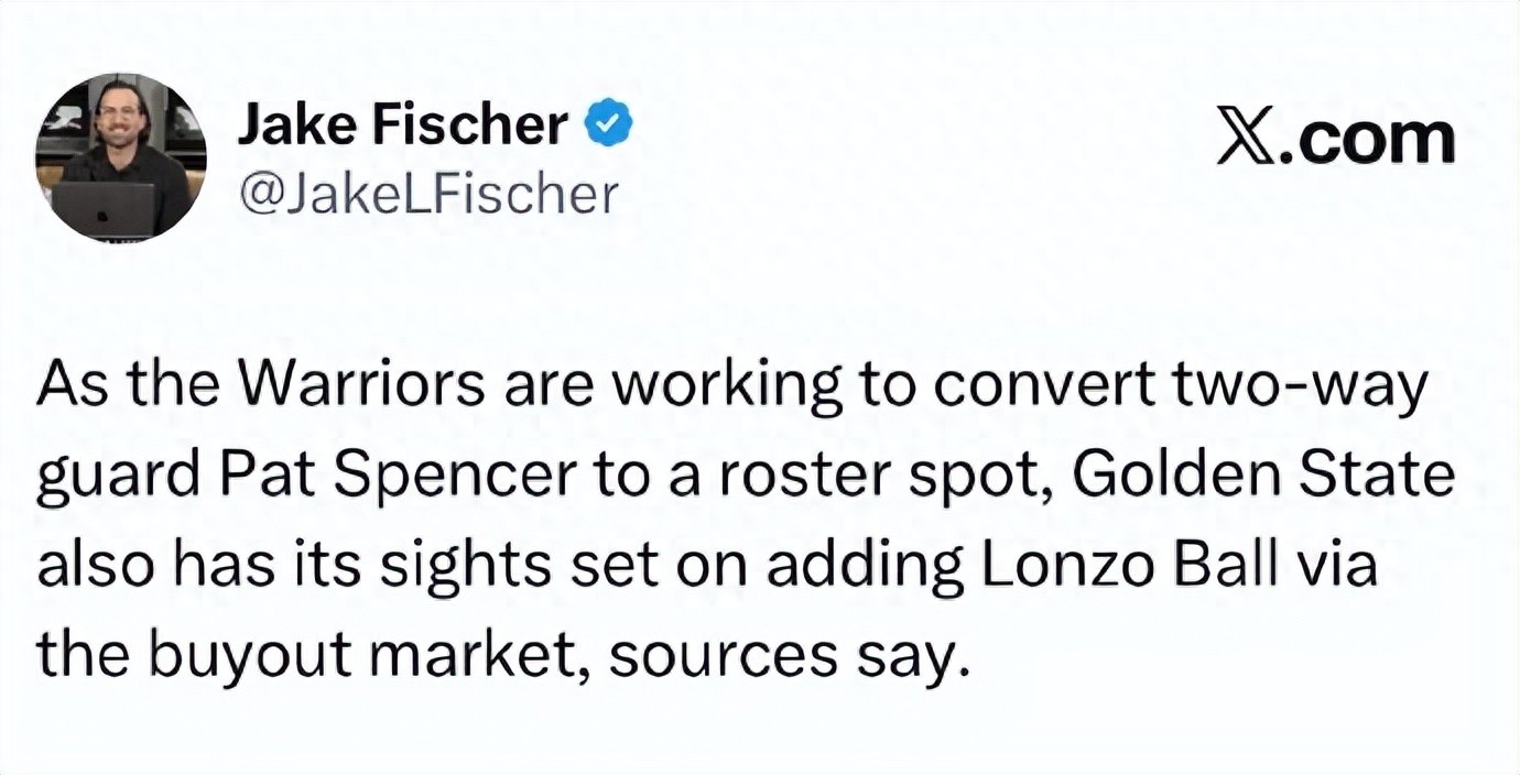 Insider Fischer revealed:The Warriors aim to sign "Lonzo Ball" on the buyout market...