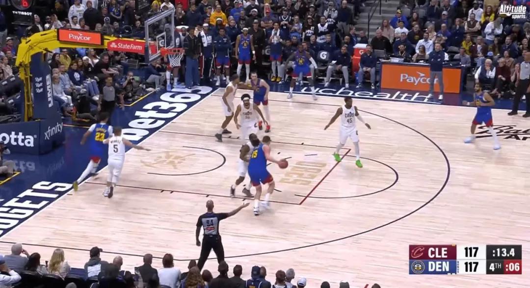Today’s comeback against the Nuggets was still driven by offense. With Mobley out, the Cavaliers’ rotation mostly consists of guards, which has weakened their defense but increased their three-point shooting threats. The Cavaliers made 15 three-pointers today. When Harden and Mitchell run pick-and-rolls, the Nuggets selectively leave the wings open to double-team, creating those three-point opportunities.