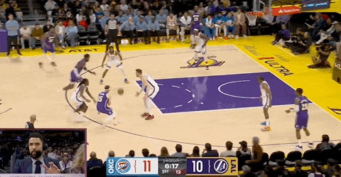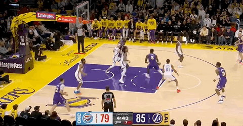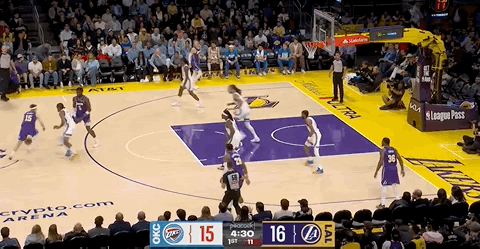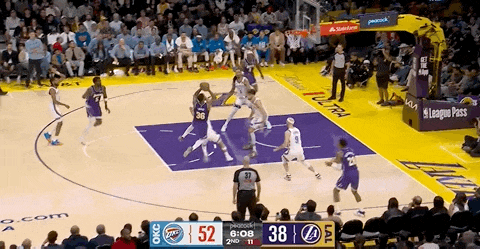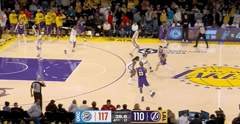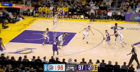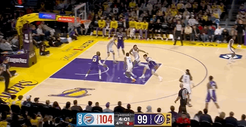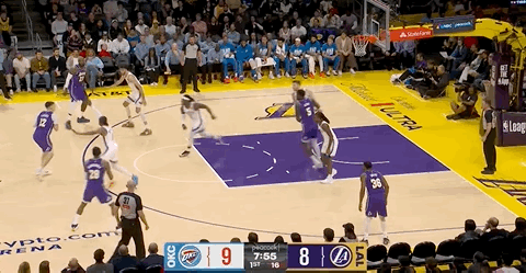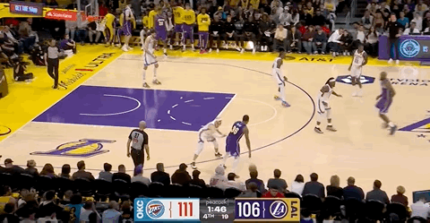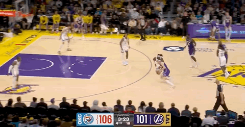 James delivered a beautiful assist, bringing the Lakers within three points, forcing a Thunder timeout.