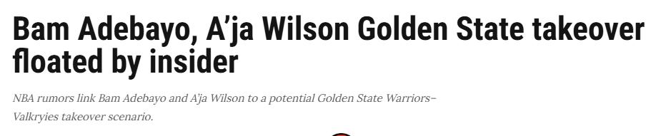 “Sources say that four-time WNBA MVP Ajayi Wilson is a primary free agent target for Lacob and the Warriors’ women’s team,” Charania wrote. “Why does this matter for the Warriors’ men’s basketball? Because Wilson and Adebayo have had a close relationship for a long time. These two becoming the faces of the Warriors’ men’s and women’s teams is definitely a storyline worth watching.”