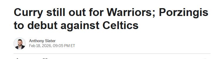 Curry will miss tomorrow's game against the Celtics with no definite return date! Porzingis to debut against his former team, enjoying Warriors' offensive system