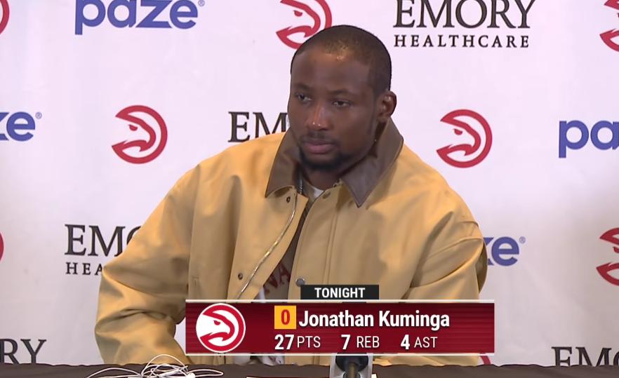 In his Hawks debut, Kuminga came off the bench for 24 minutes, shooting 9 of 12 from the field, 3 of 4 from three-point range, scoring 27 points with 7 rebounds, 4 assists, and 2 steals, finishing with a +16 plus-minus. He set a season-high in points and was seen grinning widely throughout the game, clearly very happy.