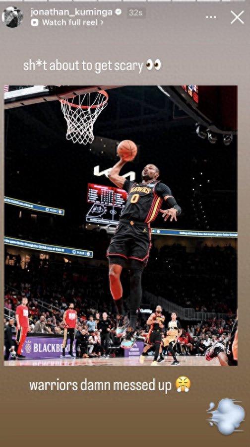 On February 26th Beijing time, Hawks newcomer Kuminga shared on social media a clip of his first dunk in his Hawks career, adding the caption: "The show is about to start! The Warriors really messed things up!" Despite deleting the post quickly, numerous fans saved screenshots.