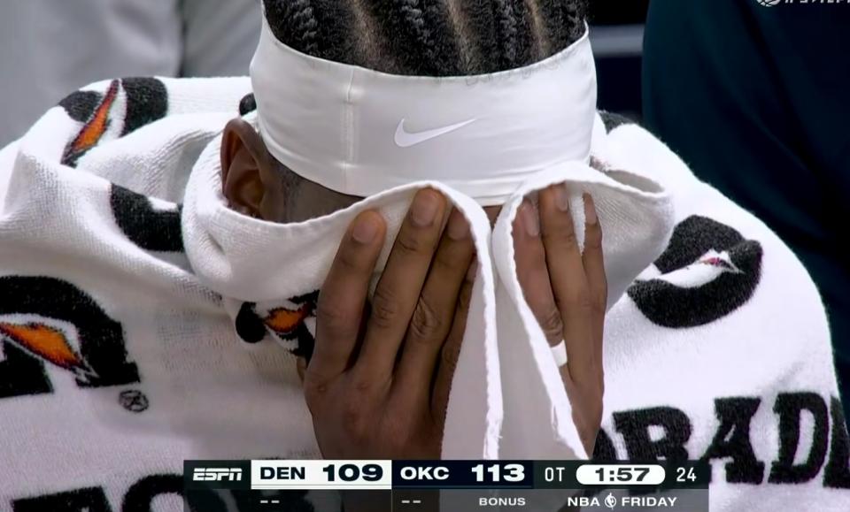 Reporter: For most of overtime, you had a towel over your face. What were you thinking? What was it like watching your teammates play?