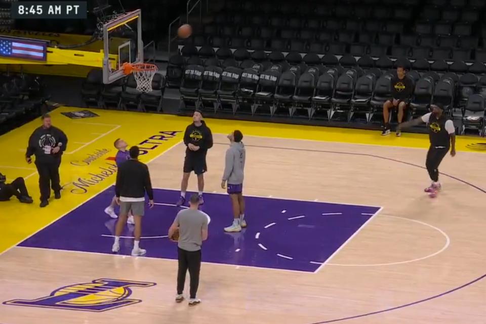 他今天照常進行了熱身:早上7點45就抵達球館,是第一個到場的球員;8點45已在場上完成了賽前常規訓練。從畫面裡能看到,他當時狀態看起來還不錯。但訓練後他的左脚反應並未達到湖人教練組和醫療團隊預期的效果。