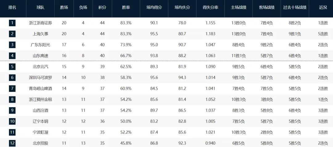 So far this season,the Beijing team ranks fifth in the league with 15 wins and 9 losses, while the Shanghai team holds the second position with 20 wins and 4 losses.