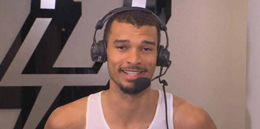 Host: In today's game, you dunked over Grant Williams and blocked Kobe White's shot—we all were stunned, it was so impressive. I just want to know: Does Wembanyama get amazed by Wembanyama's moves? What were you thinking at that moment?