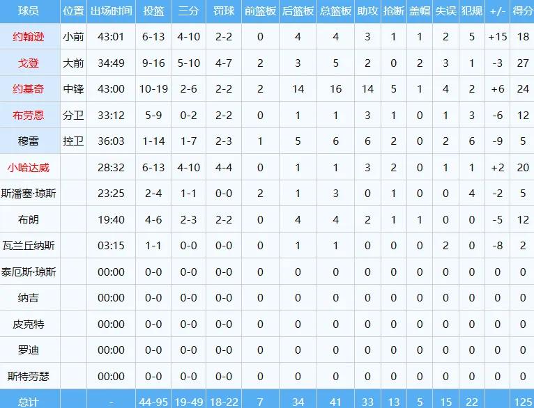 For the Nuggets, the "Lakers' nemesis" Murray was severely off-target, shooting 1-of-14 for only 5 points, 6 rebounds, and 6 assists. Jokic's massive triple-double of 24 points, 16 rebounds, 14 assists, plus 5 steals couldn't save the team. Gordon, who repeatedly made heroic plays, finished with 27 points, 5 rebounds, and 2 assists, falling just short.