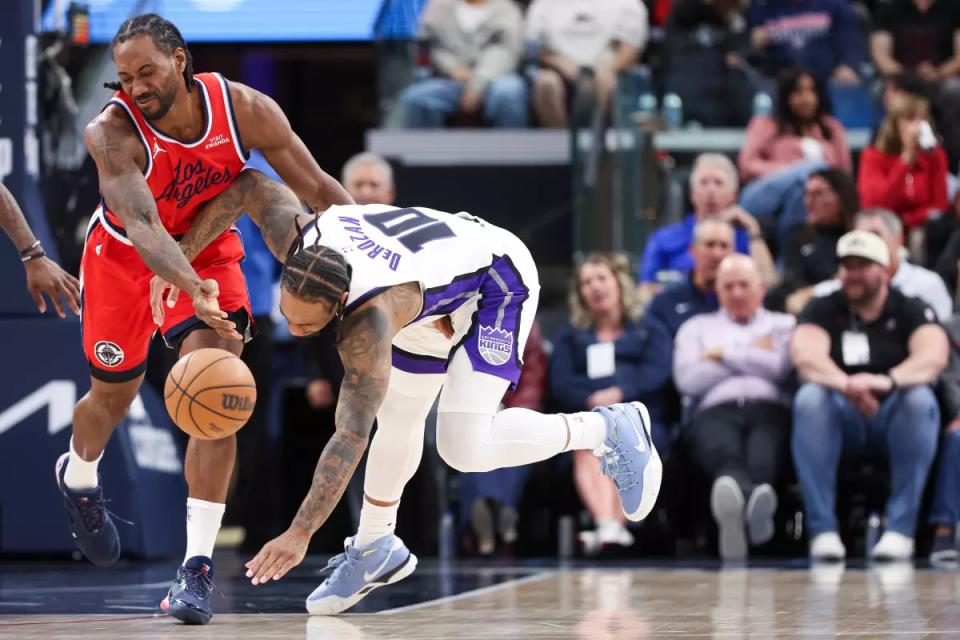He was injured late in Sunday's home loss to the Kings. With 9:27 left in the fourth quarter, Leonard landed awkwardly while defending DeRozan and retreated, limping off the court and not returning. In that game, Leonard scored 31 points for the Clippers, extending his streak of 20+ points to 45 consecutive games, setting a franchise record.