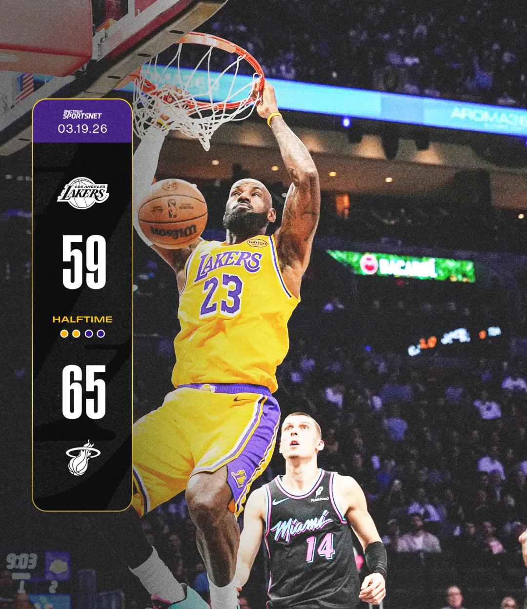 次節湖人回應了30-23,但上半場仍以59-65落後。
