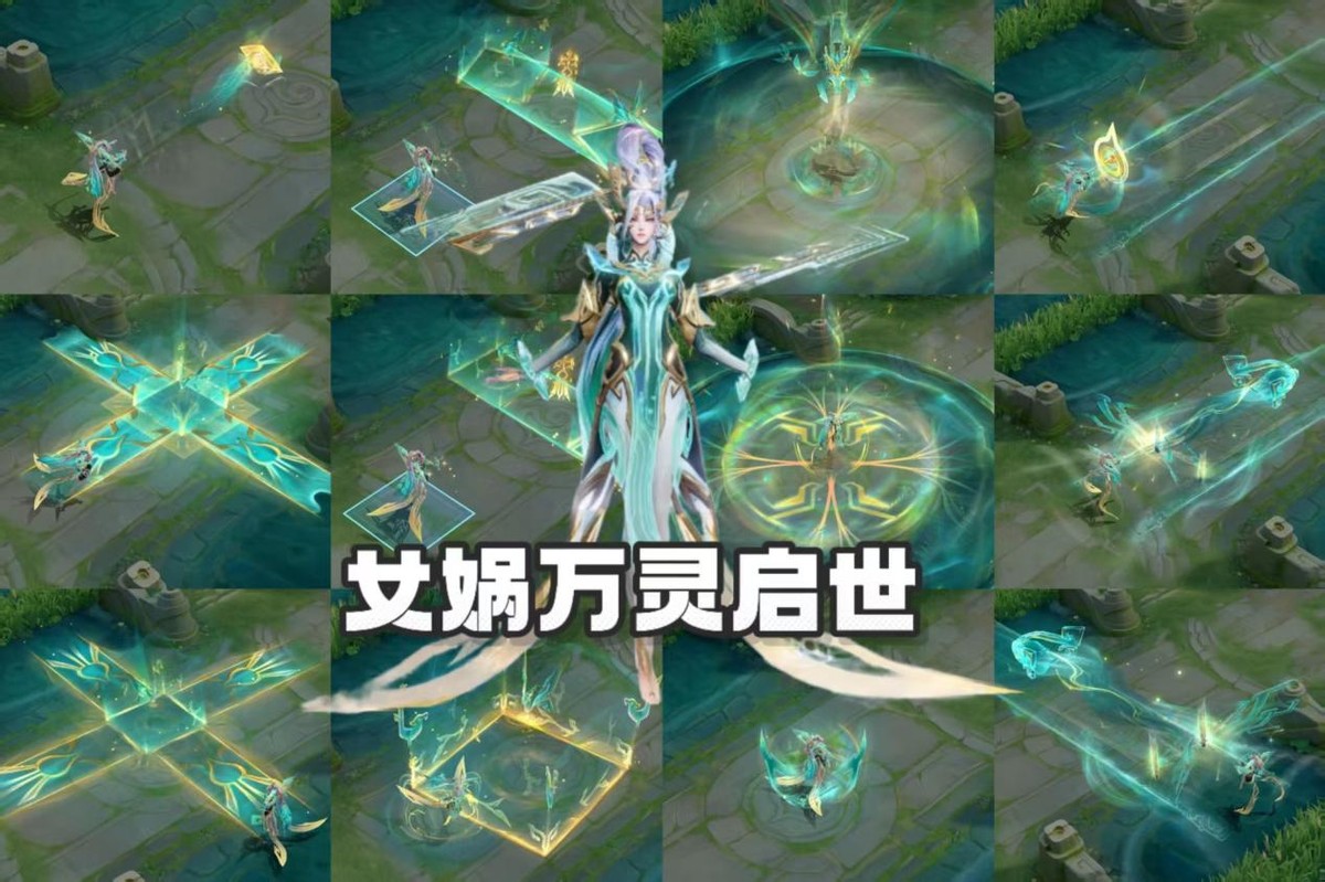 This time, Nuwa’s skin effects mainly revolve around Sanxingdui relic elements such as the eye-shaped artifact, golden bird ornament, bronze bird ornament, human-headed bird statue, and bronze bird-foot statue. Basic attacks feature totems designed from the chest patterns of the human-headed bird statue; the passive changes as Nuwa levels up, with an eye-shaped bracelet appearing on her hand at level 6 and a metallic eye-shaped magic seal forming behind her. At level 12, the metal seal extends with a jade outline, and at level 15, it glows brilliantly. The first skill causes eye-shaped seeds to sprout where they land, creating a cross-shaped bird pattern magic array, and the human-headed bird apparition emerges. The second skill summons a divine bird magic array, with branches of the sacred tree winding around the four corners; when the small arrays combine into a large one, the golden bird magic seal appears. The third skill transforms the target location into a human-headed bird apparition descending from the sky. The ultimate unleashes the divine bird charging out, with jade discs appearing wherever it passes.