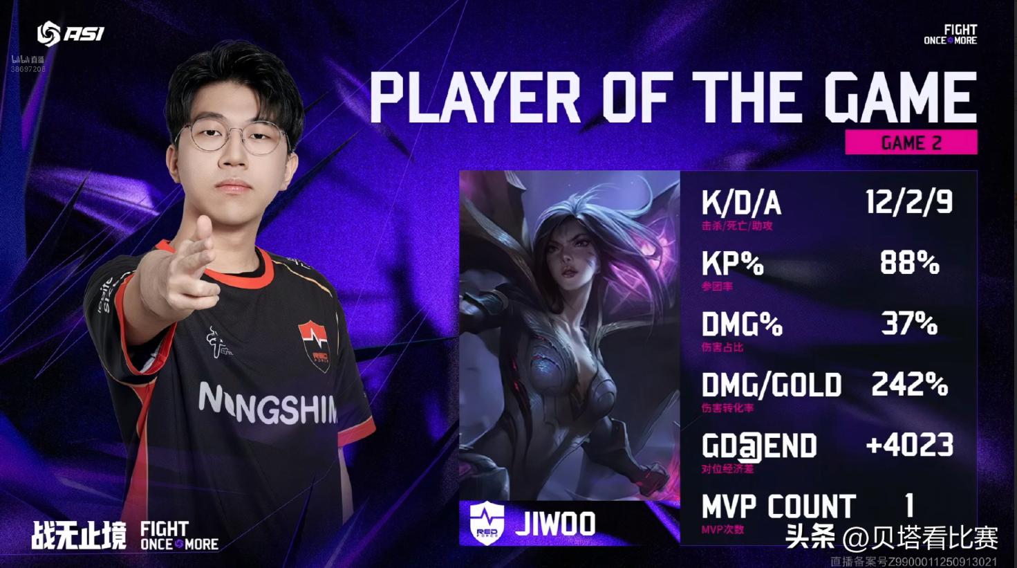 Mid-game, both teams fought over the Rift Herald, which NS secured. Calix’s Orianna solo killed Xiaohu’s Ryze, and NS executed a perfect 5-for-0 team wipe on WBG. At 23 minutes, during a dragon contest, Tian’s Lee Sin was solo killed by Jiwoo’s Kai’Sa, and NS dominated the team fight, finishing the game with a decisive push. Jiwoo’s Kai’Sa was awarded MVP.