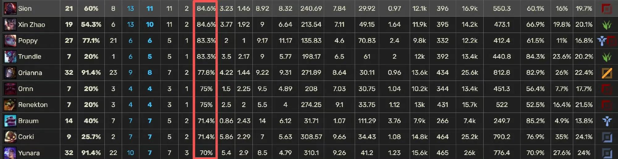 Some netizens also compiled hero statistics from the tournament so far. The top five win-rate champions are Sion, Xin Zhao, Poppy, Trundle, and Orianna. Despite Orianna receiving nerfs, this World Championship saw the innovative combo of Stopwatch plus Vision Ward, a highly advanced tactic—one item provides stats without cooldown, the other has a long cooldown but grants vision, effectively giving Orianna the power of three items early on. BLG is now at a critical survival moment; if they continue to neglect draft strategy, they risk being eliminated by a Brazilian team. After all, in S6, EDG once lost to a Brazilian team in the group stage.